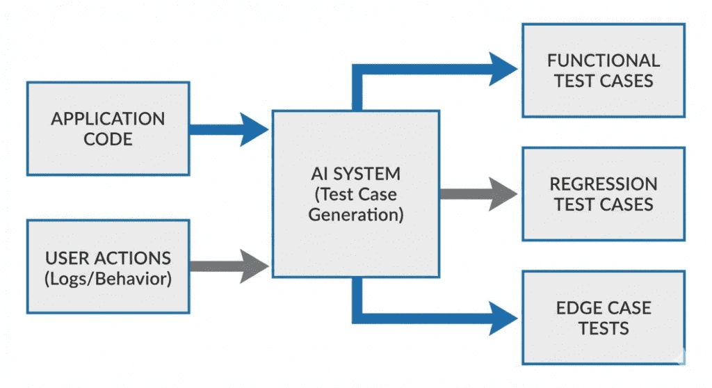 AI tools analyze application code, user flows, and system behavior to create test cases automatically. This removes the need for testers to manually write every test scenario.