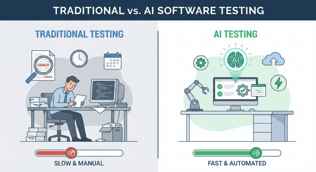 AI reduces this time by automatically generating test cases, executing tests faster, and analyzing results instantly. This allows teams to release software more quickly without sacrificing quality.